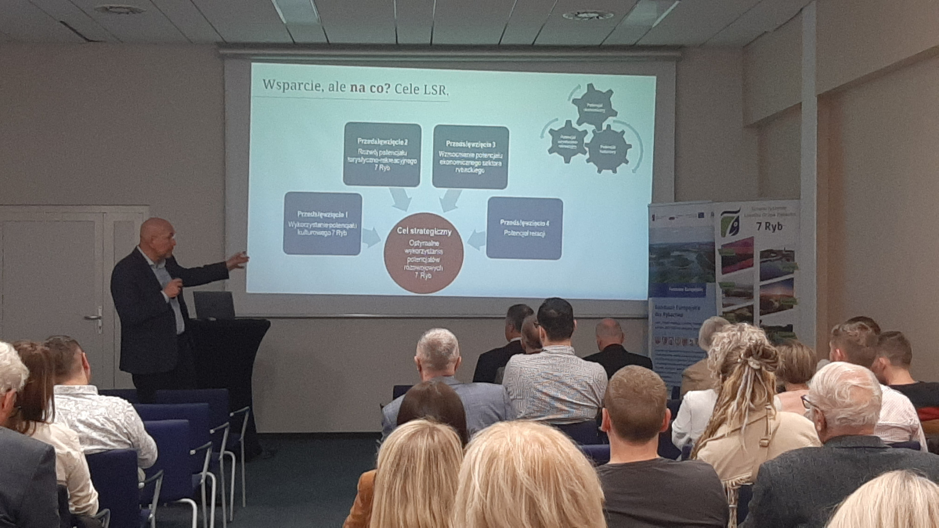 Na konferencji przedstawiono założenia Lokalnej Strategii Rozwoju Stowarzyszenia Lokalna Grupa Rybacka „7 Ryb”, realizowanej w ramach programu Fundusze Europejskie dla Rybactwa w perspektywie finansowej 2021 – 2027. Program jest kontynuacją wsparcia w perspektywie Finansowej Unii Europejskiej (UE) 2014-2020, kiedy to środki z Europejskiego Funduszu Morskiego i Rybackiego (EFMR) wdrażane były za pośrednictwem Programu Operacyjnego ,, Rybactwo i Morze’’ ( PO RYBY 2014-2020), a jeszcze wcześniej 2007-2013 PO RYBY. Program jest współfinansowany ze środków Europejskiego Funduszu Morskiego, Rybackiego, i Akwakultury oraz budżetu państwa