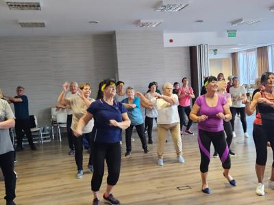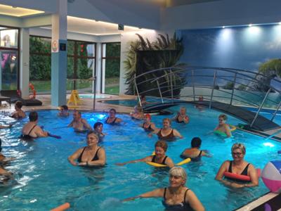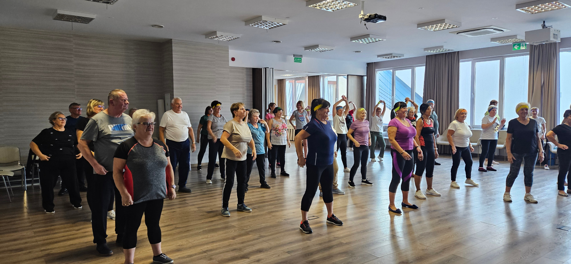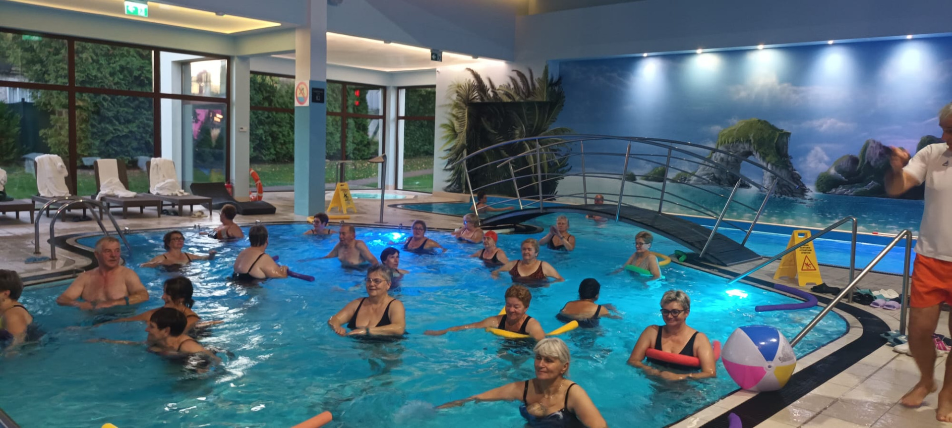 Projekt miał charakter wyjazdowy i realizowany był w nadmorskiej miejscowości Sianożęty, w dniach 19-21.10.2025 r., Ośrodku Imperiall Resort & Medi Spa. Zrealizowano cykl zajęć sportowych, w tym: 3h zajęć nordic walking, 3h zajęć zdrowy kręgosłup, 1h pilatesu, 1h zumby, 3h zajęć basenowych oraz łącznie 4h strechingu. Każdy z 90 uczestników wziął udział w 15 h zajęć, objętych projektem. Zajęcia zostały przeprowadzone przez wykwalifikowanych trenerów w realizowanych zajęciach. Dziękujemy za wyrozumiałość i profesjonalizm Marietcie Kiszce, Dariuszowi Dworaczykowi oraz Marcinowi Gąsiorowskiemu z „Planeta Świetnej Zabawy”.